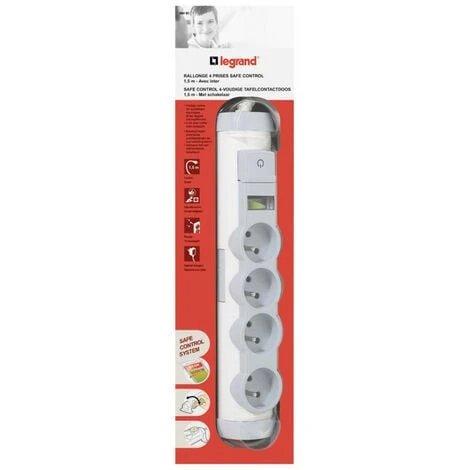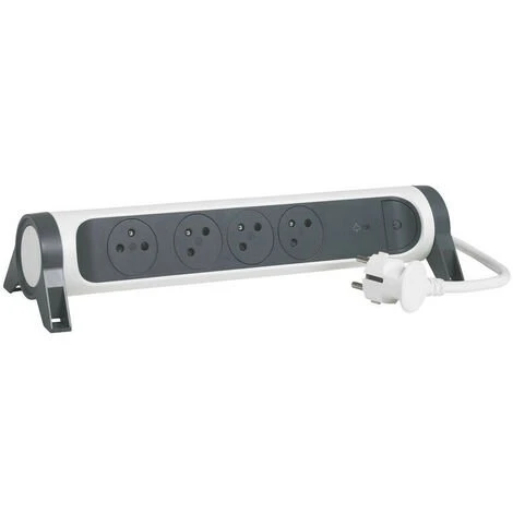 Rallonge multiprise 4 prises de courant 2P+T 16A 230V avec parafoudre – blanc et gris