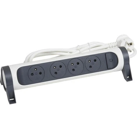 Bloc de prises pivotant sur son axe. Fixation possible par vis sur mur, meuble, plan de travail, etc. Cordon 3G 1,5. Intensité : 16 A. Puissance max. : 3500 W en 230 V.