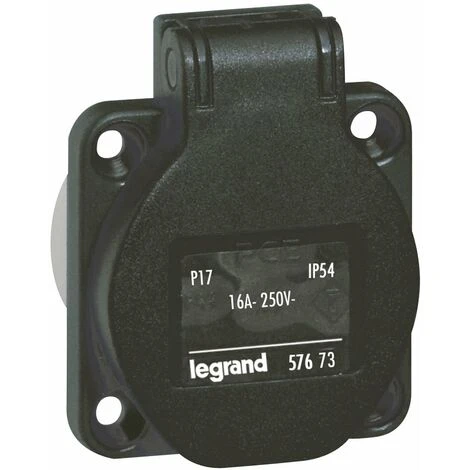 Prise à encombrement réduit P17 à brochage domestique IP54 16A – 250V~ – noir