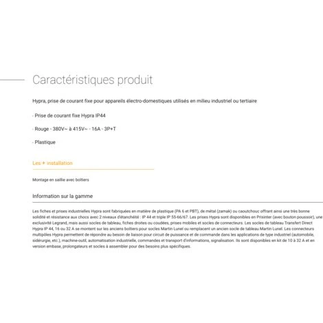 Hypra, prise de courant fixe pour appareils électro-domestiques utilisés en milieu industriel ou tertiaire.