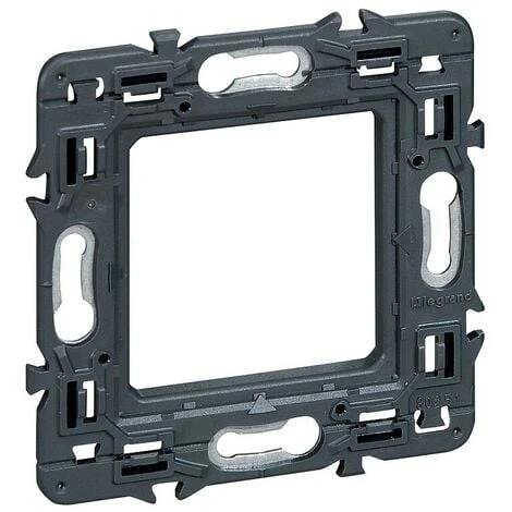 Support bimatiĂšre pour fixation d’appareillage CĂ©liane et Mosaic dans les boĂźtes Batibox. ĂquipĂ© d’entretoise amovible pour l’installation des fonctions Ă©tendues (ex. : prises prĂ©-cĂąblĂ©es).