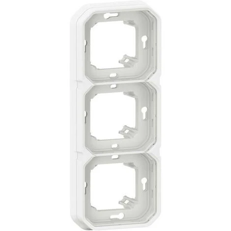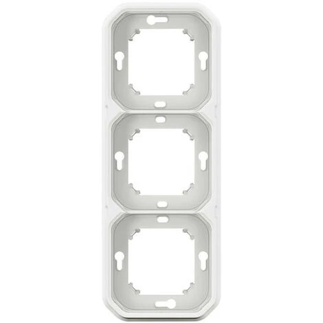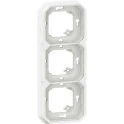 Support plaque étanche pour montage horizontal ou vertical en encastré avec boîte d’encastrement 3 postes de fonctions Plexo – blanc