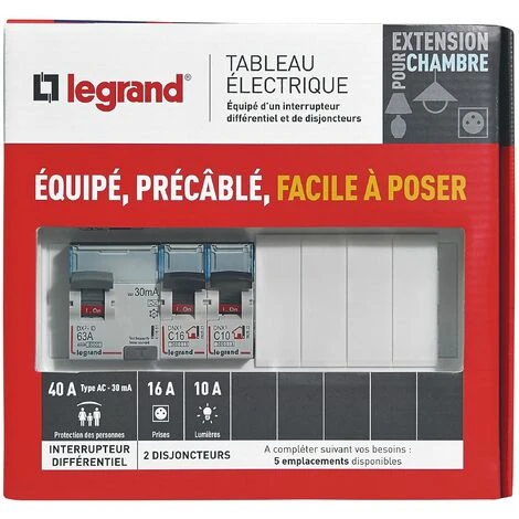 Nouveau coffret Ă©quipĂ© conforme Ă l’Ă©volution de la norme NF C 15-100. Tableau prĂȘt Ă poser pour une extension d’installation de type chambre. LivrĂ© avec le nombre d’appareils de protection requis, le tableau se pose et se raccorde en toute simplicitĂ©. Vo
