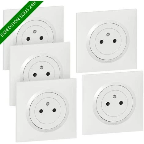 Lot composĂ© de 5 prises de courant surface blanches Dooxie Elles permettent de brancher un appareil Ă©lectrique ou Ă©lectronique. Les prises dooxie Legrand sont vendues complĂštes, prĂȘtes Ă poser. Usage en intĂ©rieur uniquement