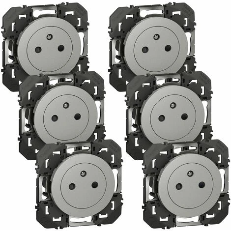Lot de 6 prises de courant Affleurante avec terre Dooxie – Aluminium – Composable – Legrand