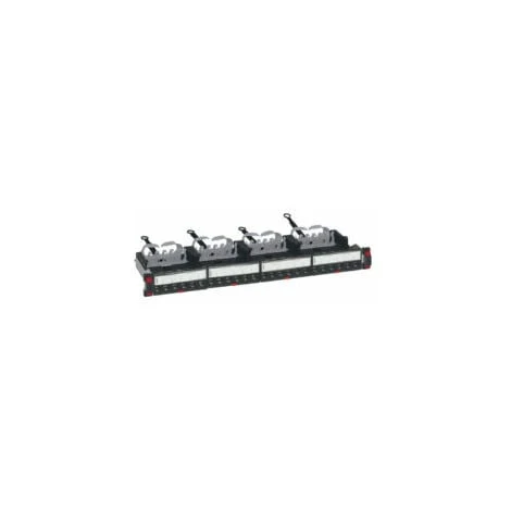- Équipé de 4 blocs de 6 connecteurs LCS³ RJ 45 cat. 6 à connexion rapide sans outil, avec repérage 568 A/B