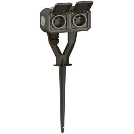 Piquet de jardin étanche avec 2 prises 2P+T precâblées Plexo livré complet avec 2 boîtiers à embouts – anthracite