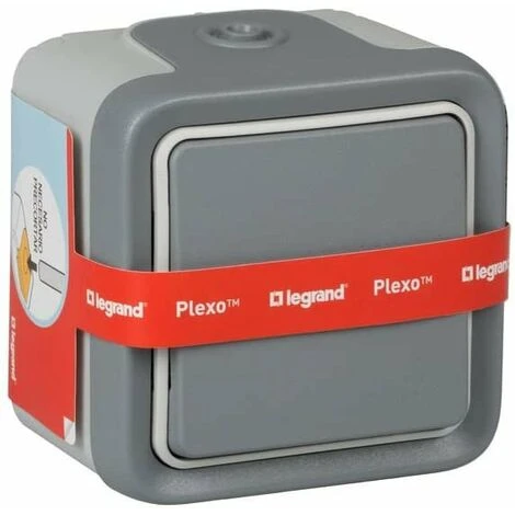 Plexus – Bouton poussoir étanche en saillie, étanche (IP55), gris – Legrand 191502.