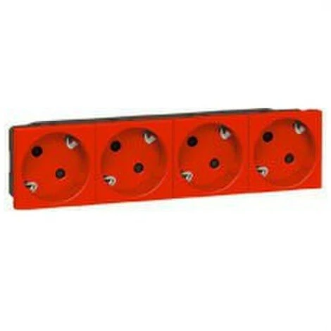 MOSAIC-II prise de terre côté rouge 4×2 pôles. Socles pour installation sur liaisons DLP – Norme allemande – Socles mosaïques avec capots et raccordement des deux côtés pour montage sur capot de liaison DLP 65 et 85 mm en combinaison avec supports et platines pour liaisons – Raccordement direct sans outil, déconnexion intuitive sans démontage du bornier à vis support – 2 x 2P T – Rouge. Mosaïque – Bases de courant.