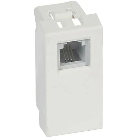 Prise téléphonique/connecteur avec fiche RJ11, module Legrand Vela série 1, couleur blanche. A appliquer sur les supports 072842,072843,072844,072846.