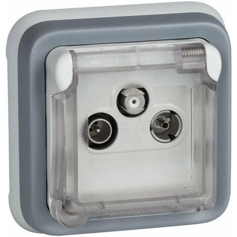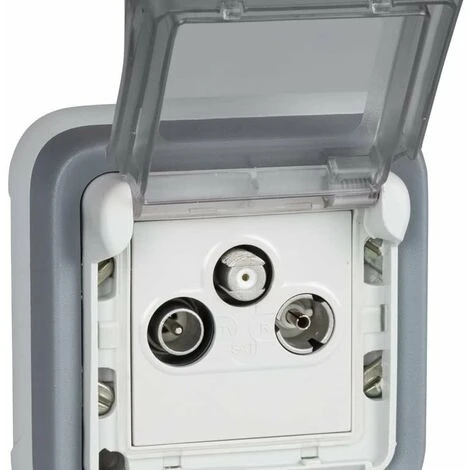 Prise TV, prise antenne TV à encastrer, gamme ‘Plexo’, couleur grise, étanche (IP55) – Legrand, 191516 Plexo.
