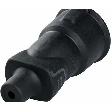 Prise 2P+T – 16 A – Matériau caoutchouc noir résistant – Sortie de câble droite – Câble 3 x 2,5 mm² max. – Noir – Avec étiquette code-barres